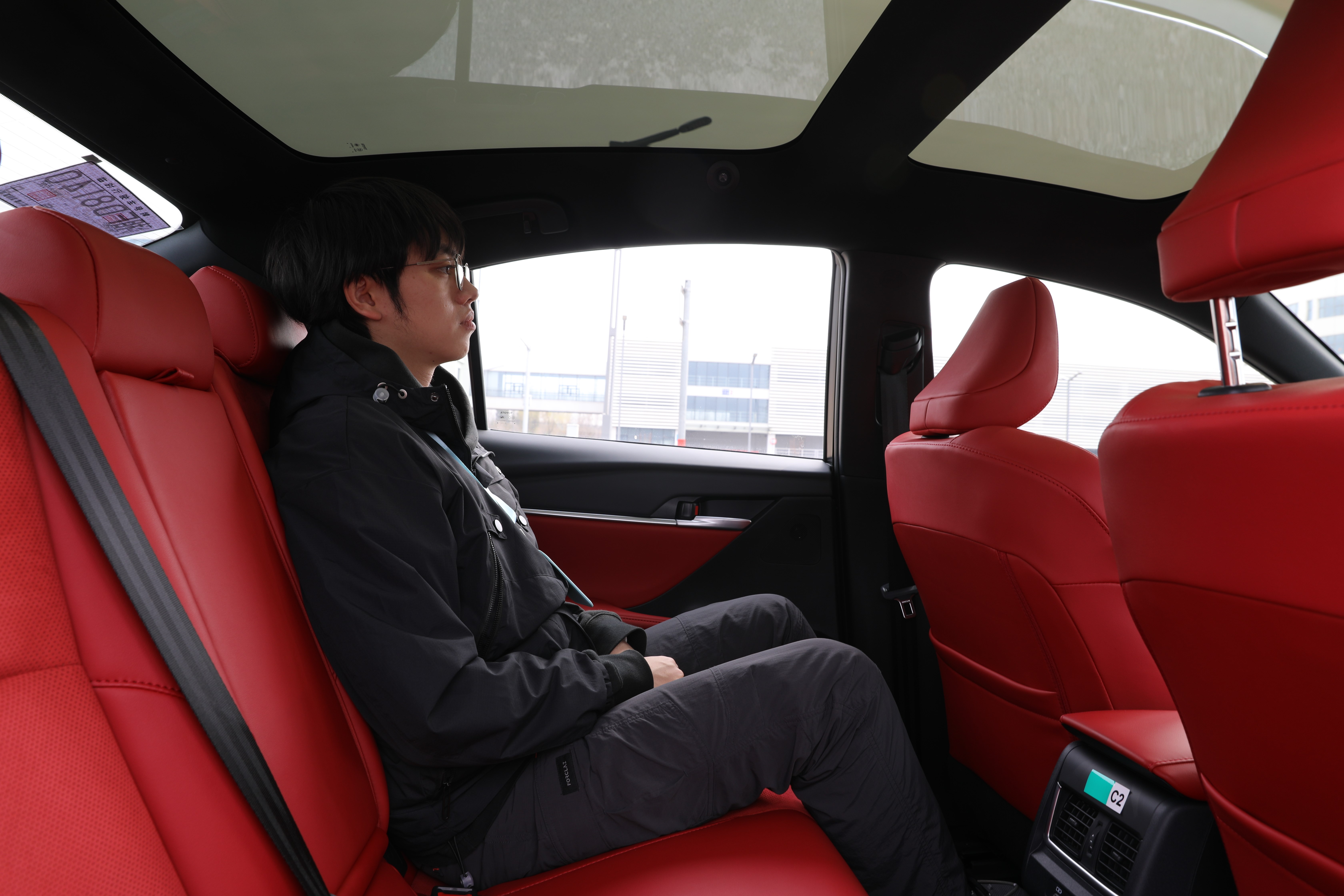 座椅依舊很舒適,全景天窗幫助車內視野更加通透,而至于空間方面,體驗者身高180厘米,后排腿部空間和頭部空間依然有很大富裕,而且后排座椅也很寬大。