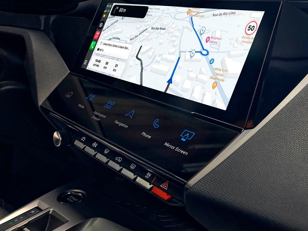 內飾仍然非常科幻,依舊采用家族式i-Cockpit座艙,中央配備10英寸中控屏,內置i-Connect娛樂系統(tǒng),并支持Apple CarPlay和Android Auto手機互聯(lián)。